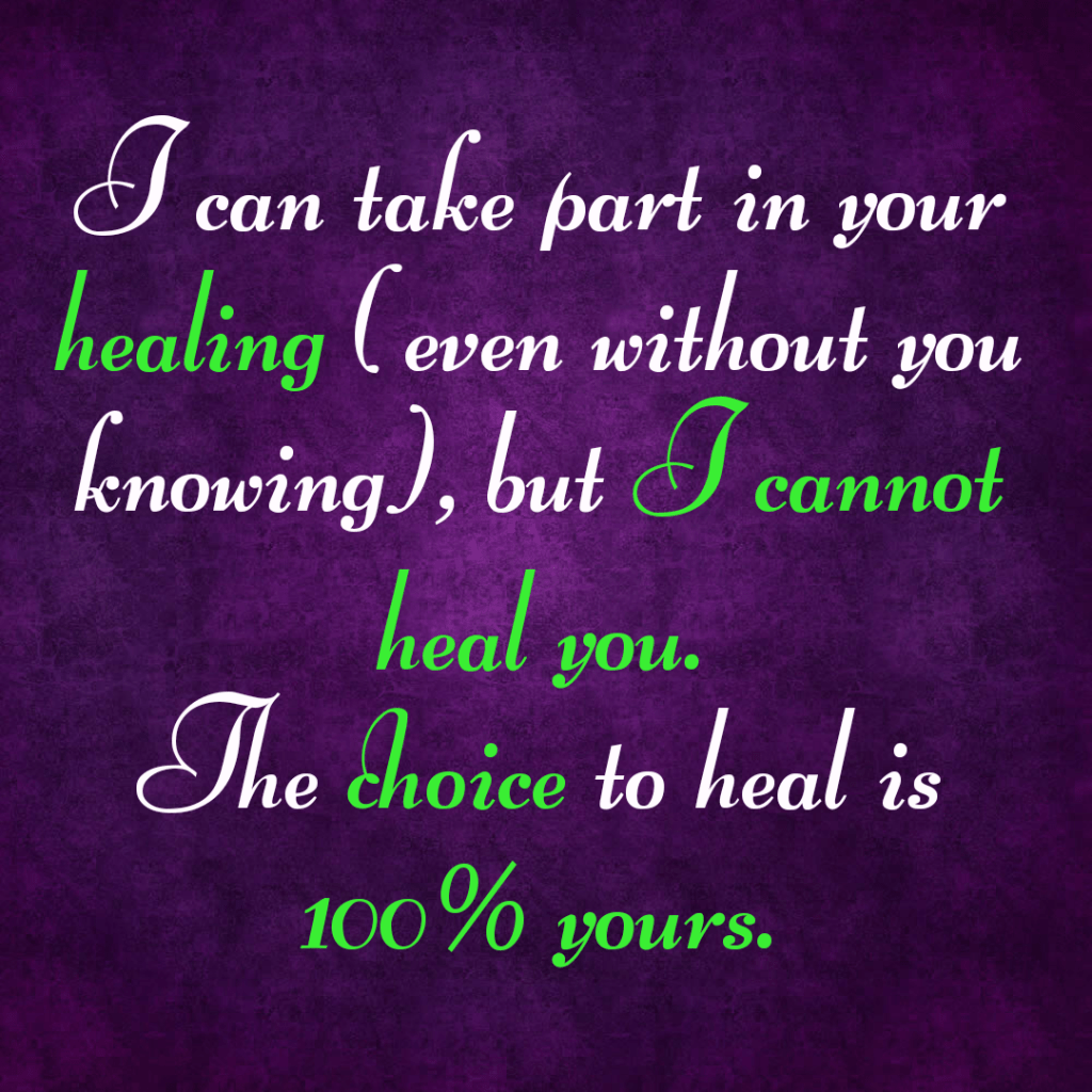 💜I can take part in your healing (even without you knowing), but I cannot heal you. The choice to heal is 100% yours.