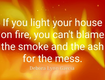 We all have to be responsible for our actions. But if you are going to be the creator of a hostile environment, it is up to you to clean it up if you don’t want hostilities to linger and grow. You can’t ignore the pain you inflict, the mess you create and leave behind, and expect it to repair itself – and especially if you repeatedly set the fire. You can’t blame the person/s you are abusing for not cleaning up the catastrophe. As a matter of fact, they can’t. If you light your house on fire, you can’t blame the smoke and the ash for the mess.